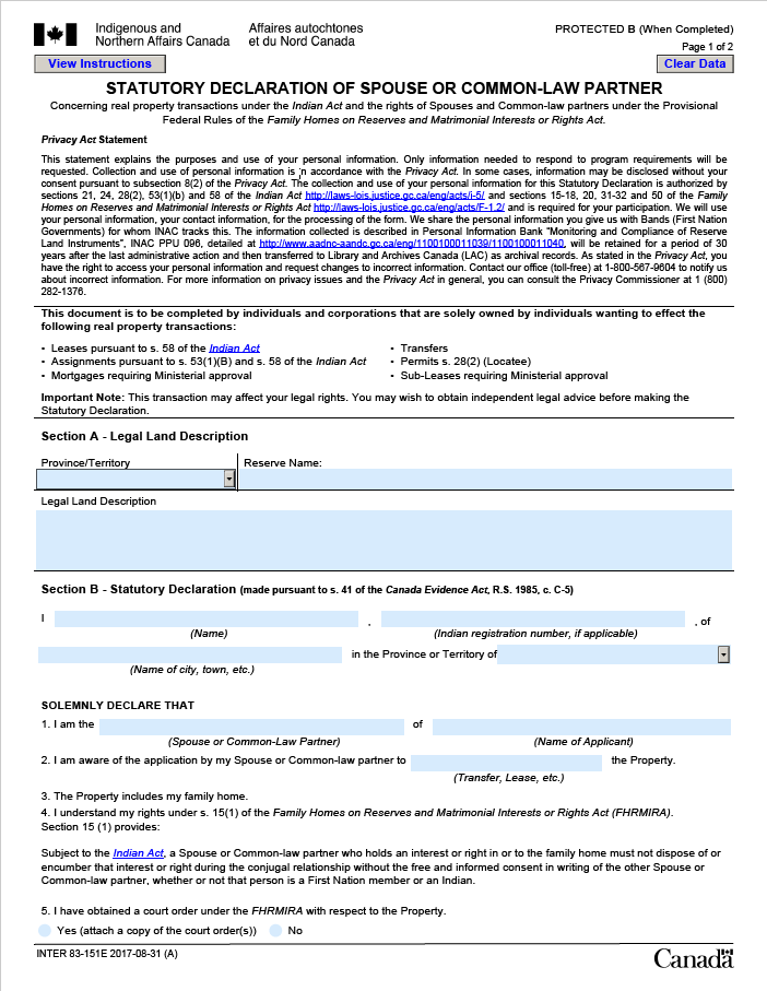 This form (83-151E; 2 pages) concerns real property transactions and common-law partners. For details, refer to How to Process a Land Transfer.