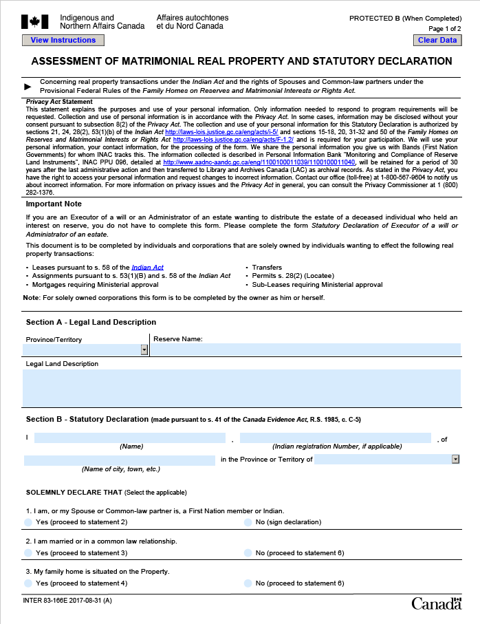 Assessment of Matrimonial Real Property and Statutory Declaration